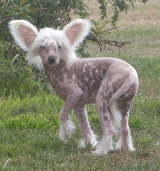 Le Hairless, ou chien nu, n'a qu'une crête de poils sur la tête et les joues, ainsi qu'un plumet à la queue, et des garnitures au bout des pattes. Le corps est exempt de poils
